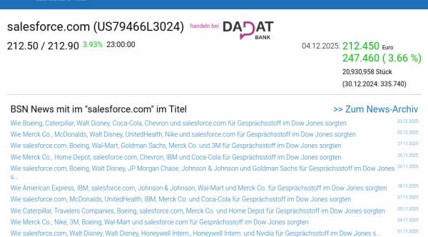 salesforce.com am 4.12. 3,66%, Volumen 269% normaler Tage