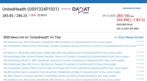 UnitedHealth am 4.12. -1,83%, Volumen 67% normaler Tage