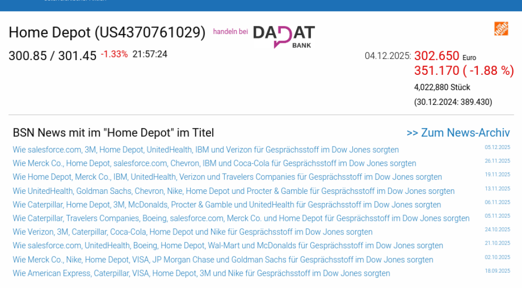 Home Depot am 4.12. -1,88%, Volumen 111% normaler Tage