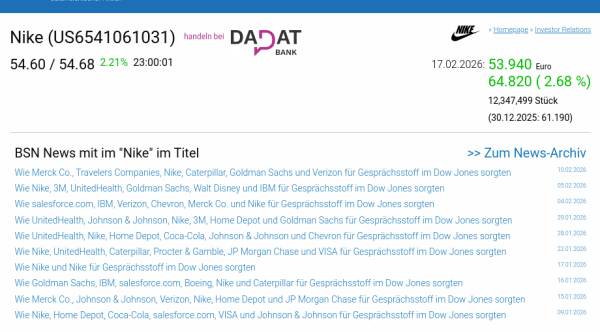 Nike am 17.2. 2,68%, Volumen 75% normaler Tage
