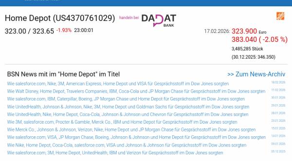 Home Depot am 17.2. -2,05%, Volumen 81% normaler Tage
