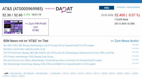 AT&S am 25.2. -5,07%, Volumen 75% normaler Tage