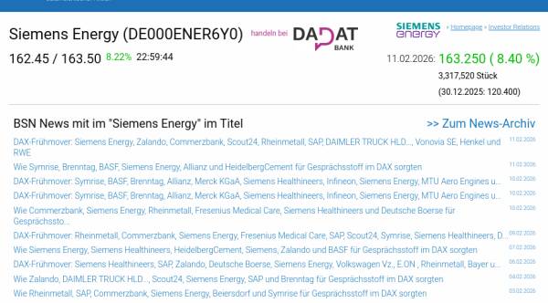 Siemens Energy am 11.2. 8,40%, Volumen 142% normaler Tage