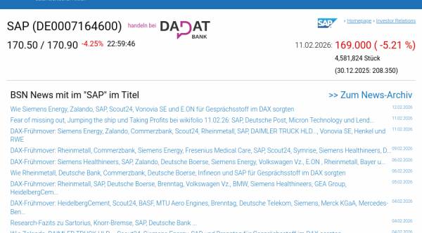 SAP am 11.2. -5,21%, Volumen 143% normaler Tage
