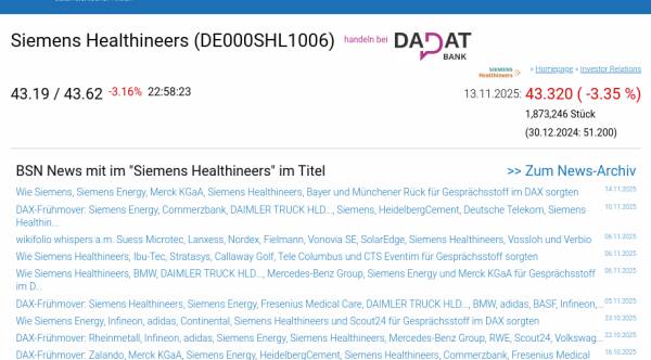 Siemens Healthineers am 13.11. -3,35%, Volumen 210% normaler Tage