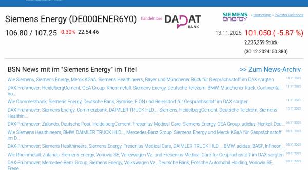 Siemens Energy am 13.11. -5,87%, Volumen 76% normaler Tage