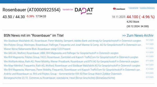 Aktien auf dem Radar:FACC, VIG, Zumtobel, Austriacard Holdings AG, Pierer Mobility, Rosenbauer, EVN, voestalpine, Addiko Bank, Gurktaler AG Stamm, Gurktaler AG VZ, Stadlauer Malzfabrik AG, BKS Bank Stamm, Oberbank AG Stamm, Amag, Flughafen Wien, Österreichische Post, Polytec Group, Porsche Automobil Holding, DAIMLER TRUCK HLD....
