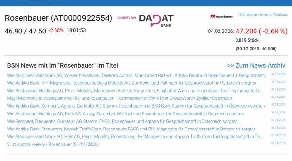 Rosenbauer am 4.2. -2,68%, Volumen 169% normaler Tage