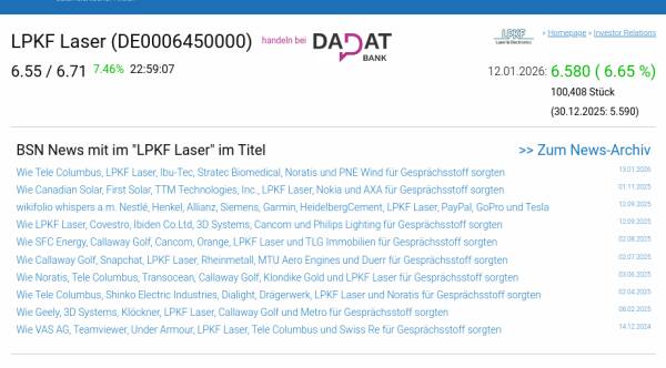 LPKF Laser am 12.1. 6,65%, Volumen 143% normaler Tage