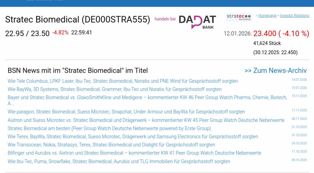 Stratec Biomedical am 12.1. -4,10%, Volumen 283% normaler Tage