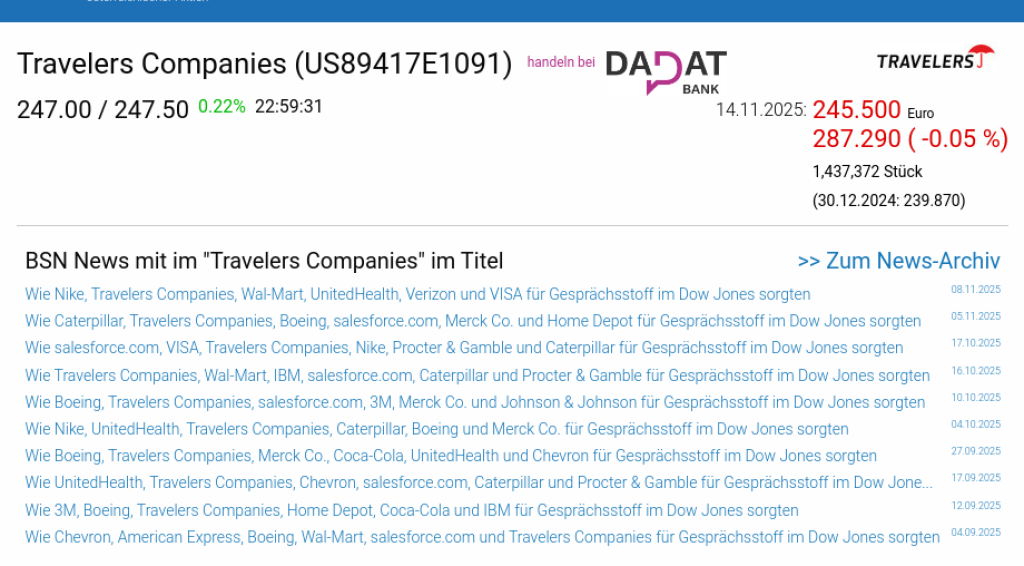 Travelers Companies am 14.11. -0,05%, Volumen 110% normaler Tage