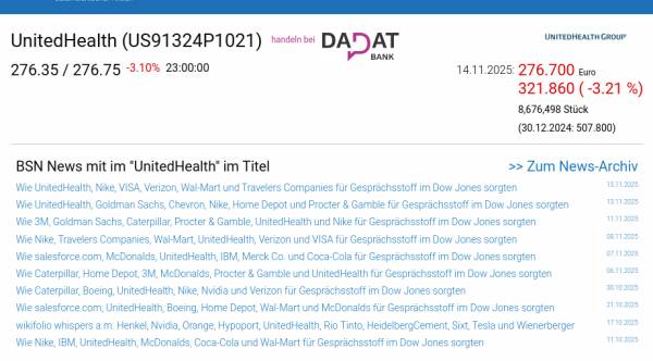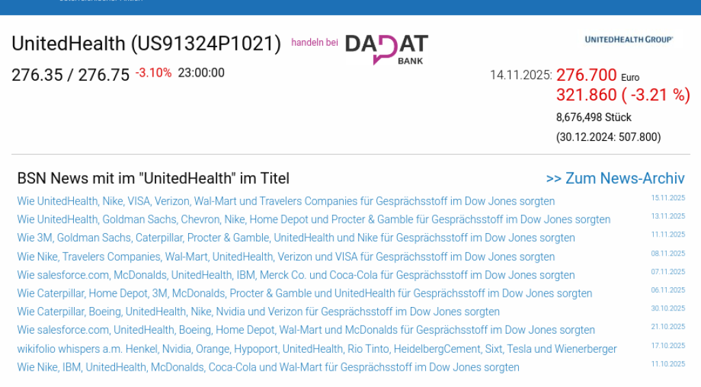 UnitedHealth am 14.11. -3,21%, Volumen 71% normaler Tage