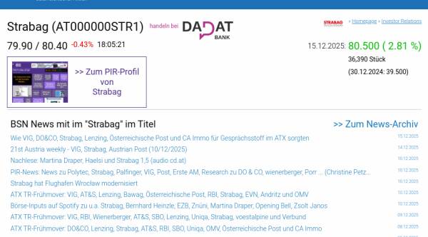 Strabag am 15.12. 2,81%, Volumen 84% normaler Tage