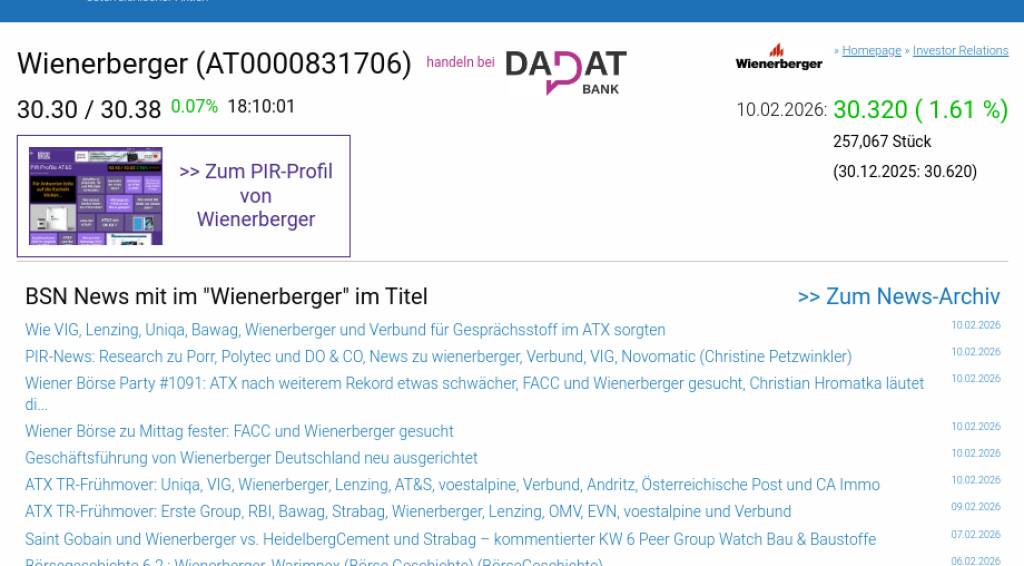 Wienerberger am 10.2. 1,61%, Volumen 107% normaler Tage