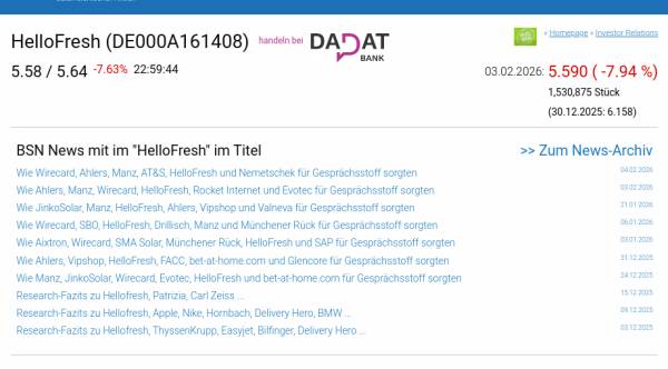 HelloFresh am 3.2. -7,94%, Volumen 146% normaler Tage