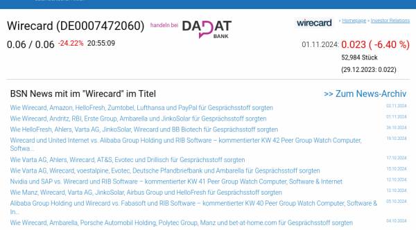 Wirecard am 1.11. -6,40%, Volumen 45% normaler Tage
