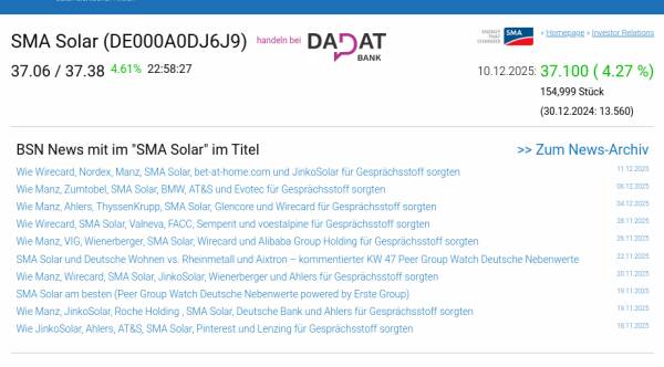 SMA Solar am 10.12. 4,27%, Volumen 70% normaler Tage