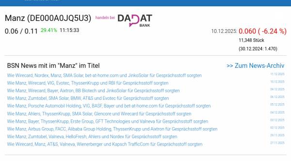 Manz am 10.12. -6,24%, Volumen 103% normaler Tage