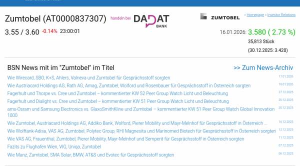 Zumtobel am 16.1. 2,73%, Volumen 102% normaler Tage