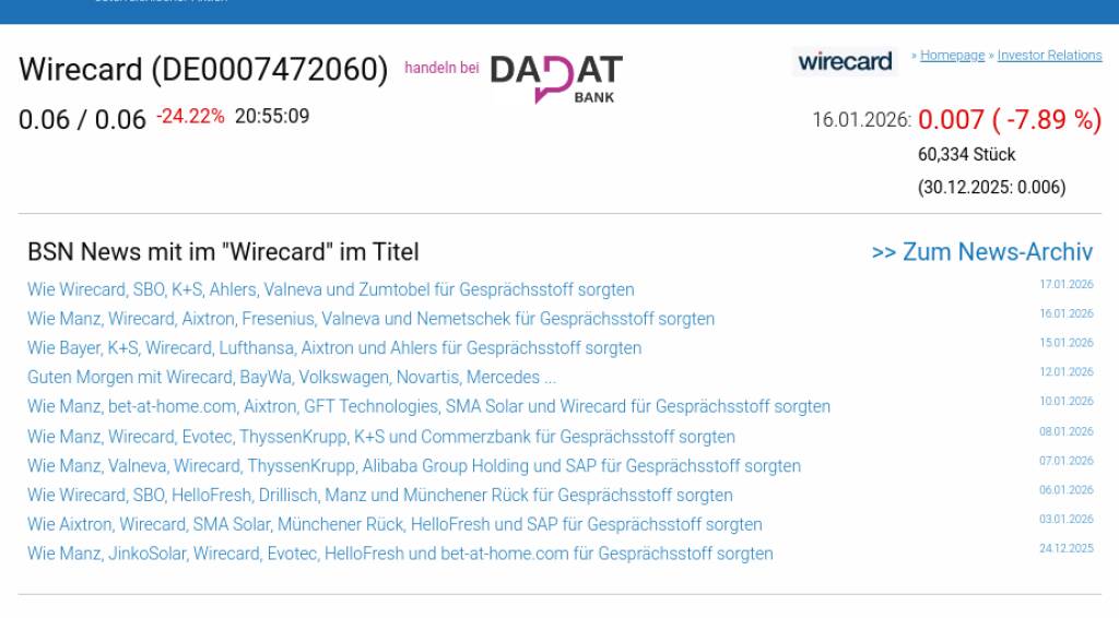 Wirecard am 16.1. -7,89%, Volumen 62% normaler Tage