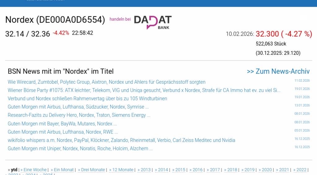 Nordex am 10.2. -4,27%, Volumen 84% normaler Tage