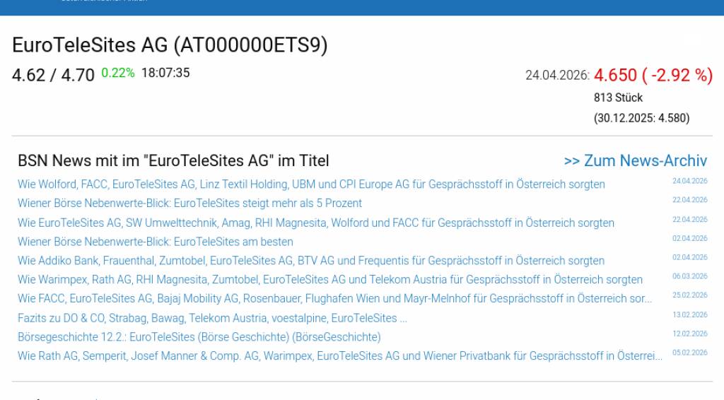 EuroTeleSites AG am 24.4. -2,92%, Volumen 7% normaler Tage