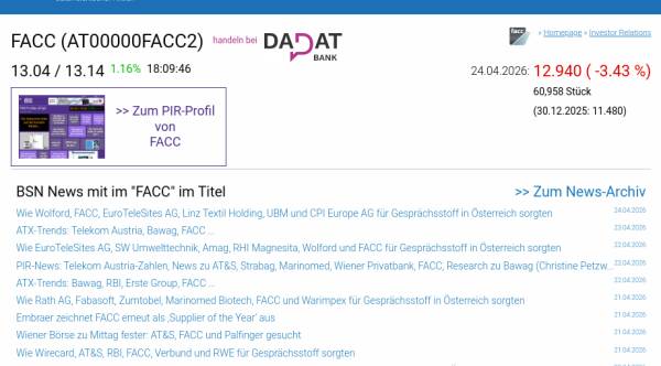 FACC am 24.4. -3,43%, Volumen 81% normaler Tage