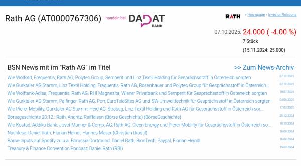 Rath AG am 7.10. -4,00%, Volumen 11% normaler Tage