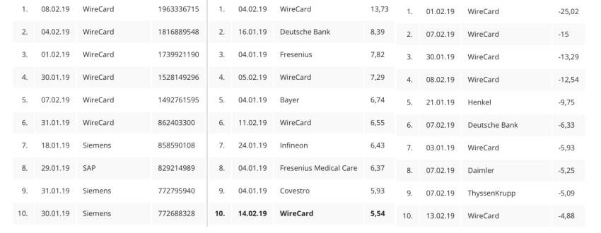 WireCard dominiert die DAX Top10