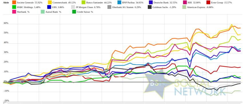 BSN Group Banken Performancevergleich YTD, Stand: 22.03.2025