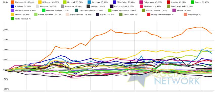 BSN Group Deutsche Nebenwerte Performancevergleich YTD, Stand: 16.10.2025