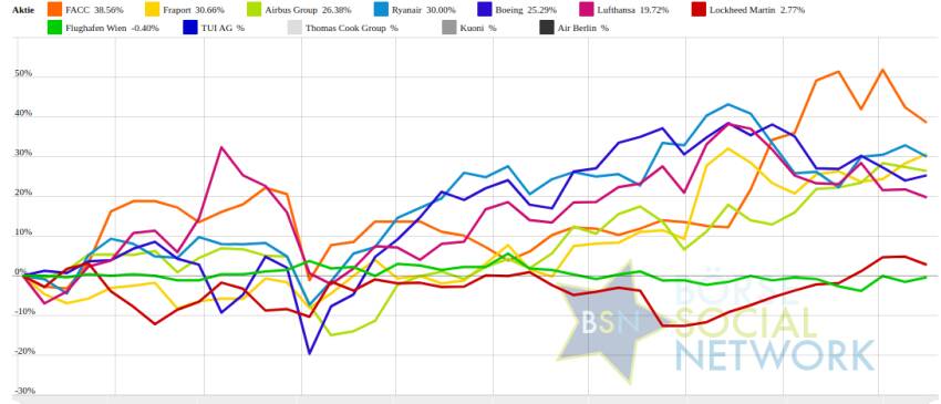 BSN Group Luftfahrt & Reise Performancevergleich YTD, Stand: 18.10.2025
