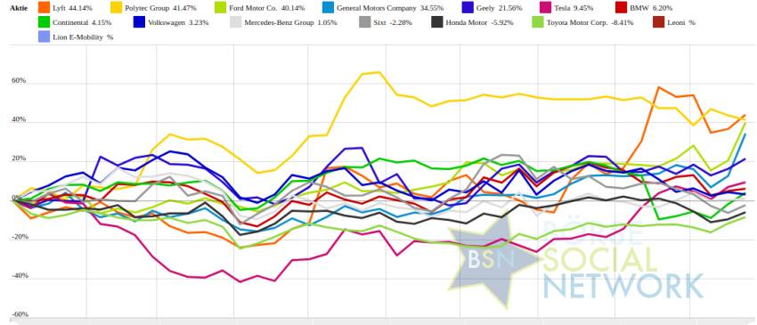 BSN Group Auto, Motor und Zulieferer Performancevergleich YTD, Stand: 25.10.2025