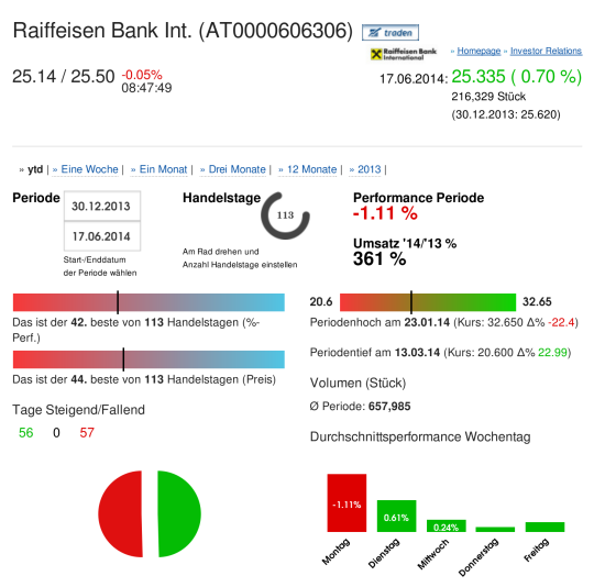 Raiffeisen Bank Int. -1,11% mit 361 Prozent Umsatz vs. 2013