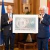 ... einen eigenen Briefmarkenblock heraus. Foto: Walter Oblin, Generaldirektor, Österreichische Post AG, mit ...