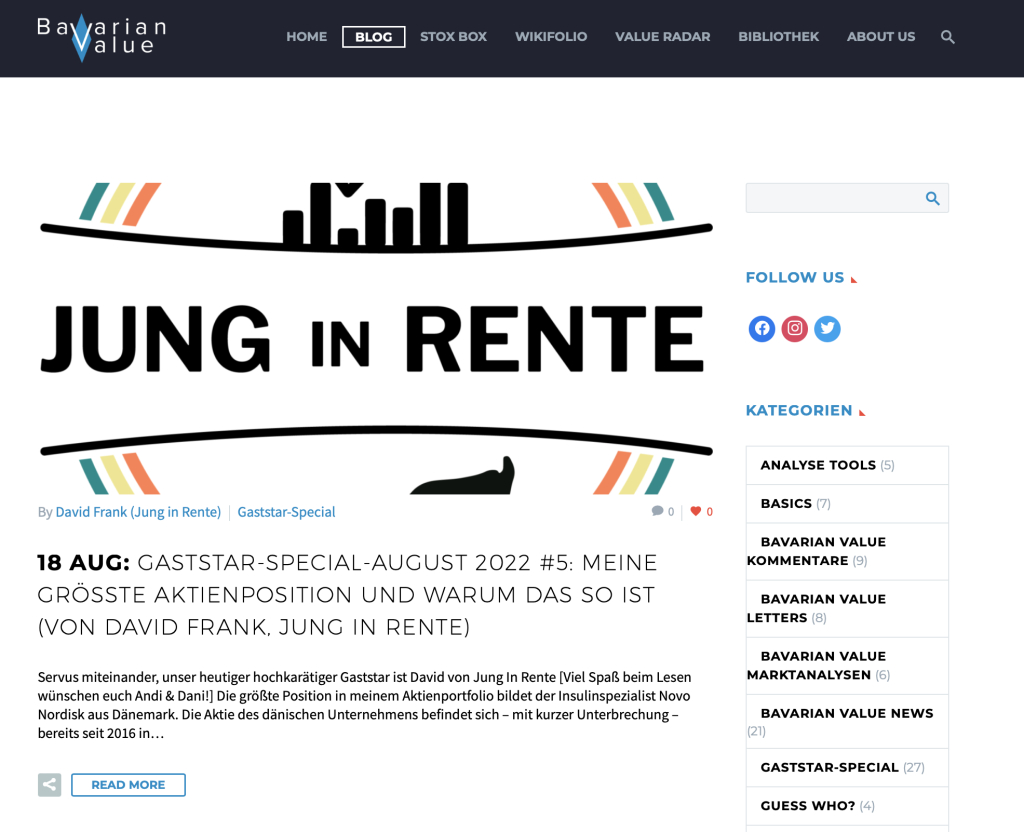 Auf Bavarian Value zeigen euch Andreas und Daniel den Bavarian Way of Value Investing.Wir versorgen euch auf unserem Blog mit ausführlichen Aktienanalysen und interessanten Artikeln zum Thema Value Investing.