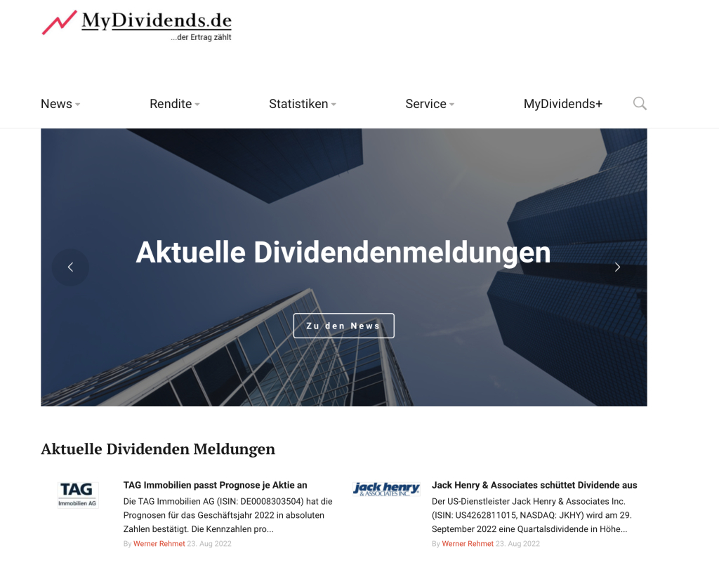 MyDividends widmet sich ausschließlich dem Thema Dividenden, unter dem Motto „der Ertrag zählt“. In Studien konnte nachgewiesen werden, dass ein Großteil der langfristigen Performance einer Aktie von der Dividende stammt. Welche Unternehmen erhöhen oder kürzen die Dividende und wer leistet erstmals eine Ausschüttung? Dies sind börsenrelevante Nachrichten, über die wir täglich berichten.