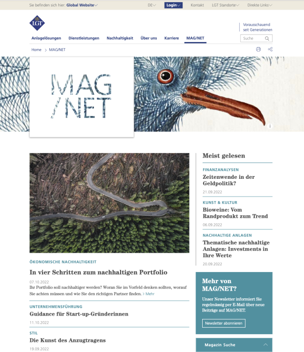 MAG/NET bietet Ihnen Wissenswertes aus den Bereichen Wirtschaft und Finanzen wie auch Kunst und Leben.