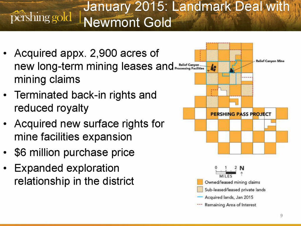 „ January 2015: Landmark deal with Newmont Gold - Pershing Gold “