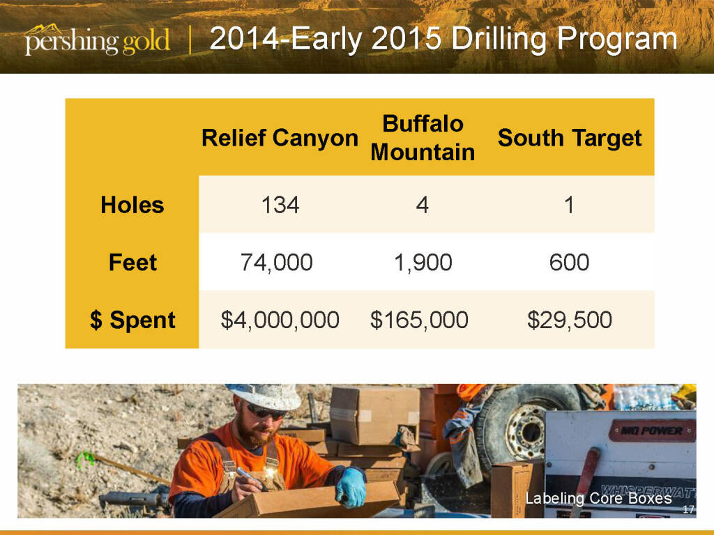 „ 2014-Early 2015 drilling program - Pershing Gold “