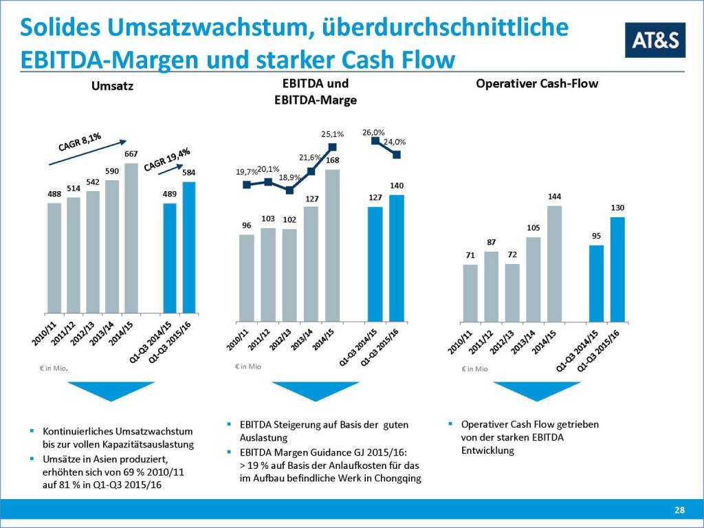 „ AT&S Solides Umsatzwachstum, überdurchschnittliche EBITDA-Margen und starker Cash Flow “