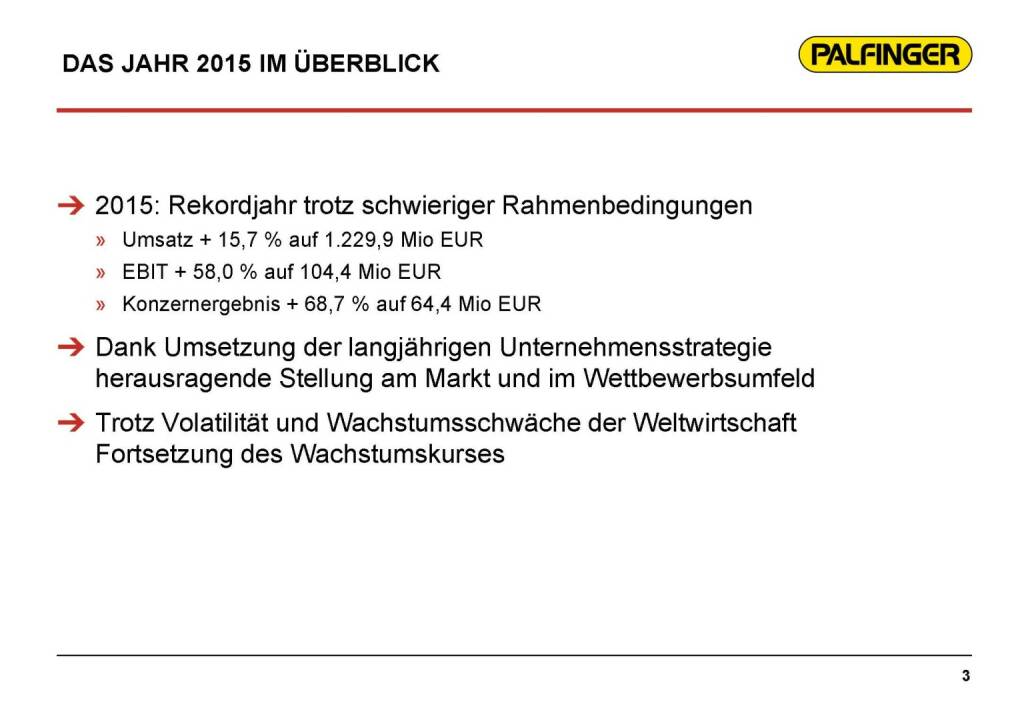 „ Palfinger steigerte 2015 das Wachstumstempo Rekorde bei Umsatz und Ergebnis “