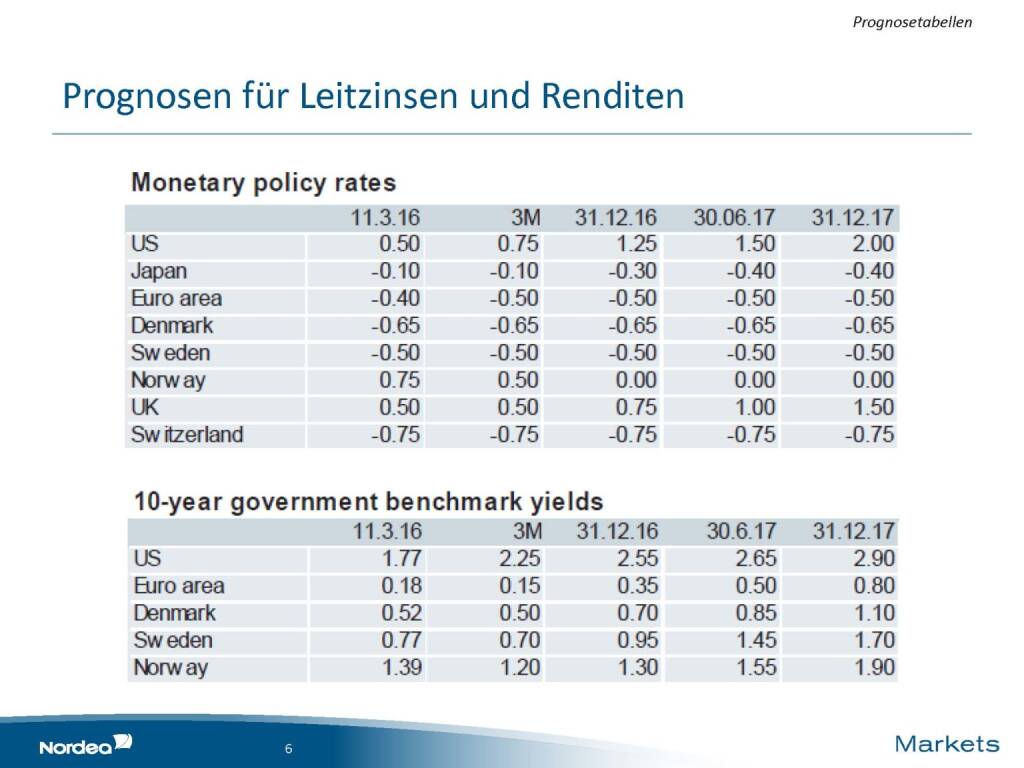 Nordea - Prognosen Leitzinsen und Renditen