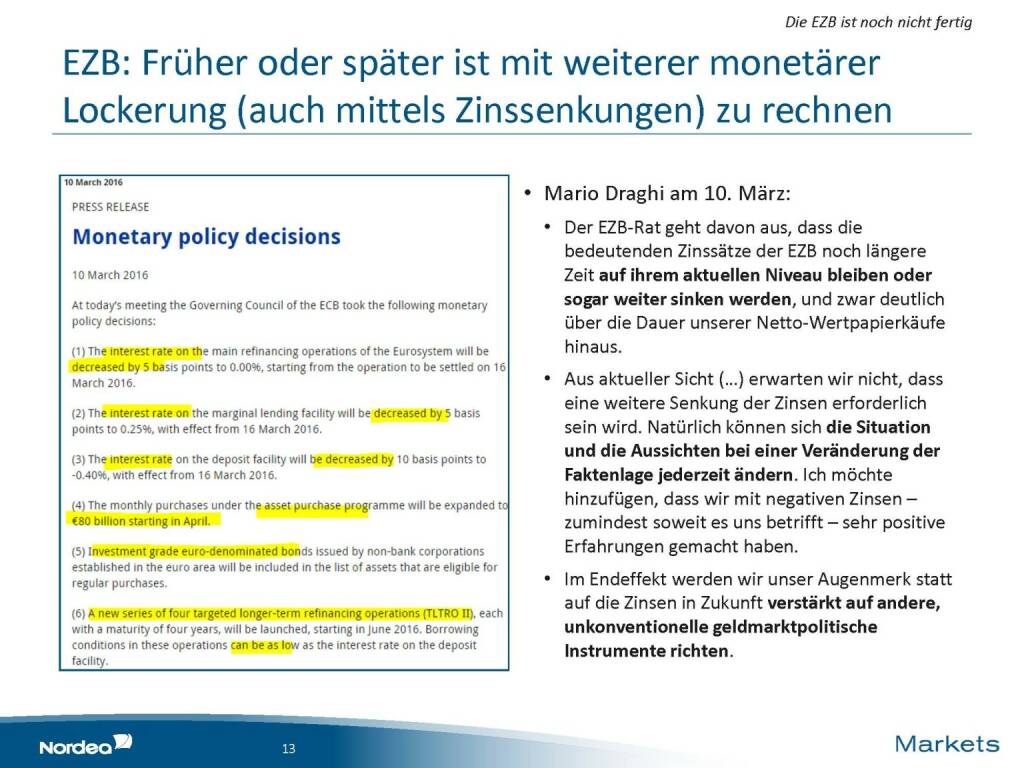 Nordea - EZB monetäre Lockerung