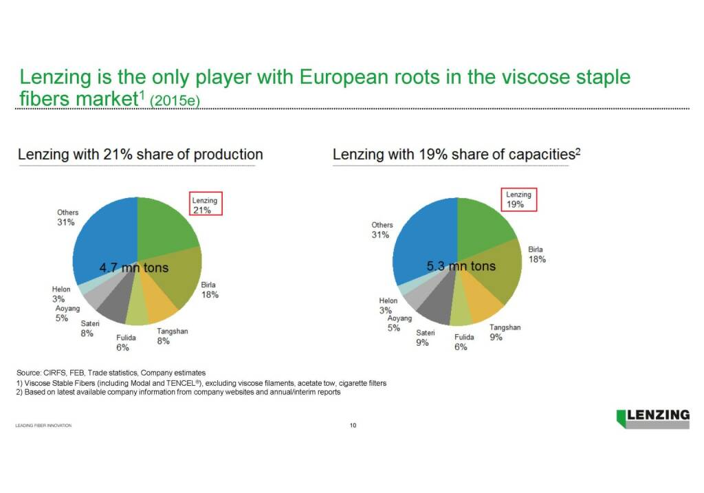 „ Lenzing is the only player with European roots in the viscose staple fibers market “