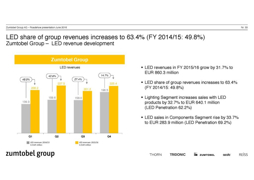 LED revenue development: LED share of group revenues increases to 63,4% (2014/15: 49,8%)