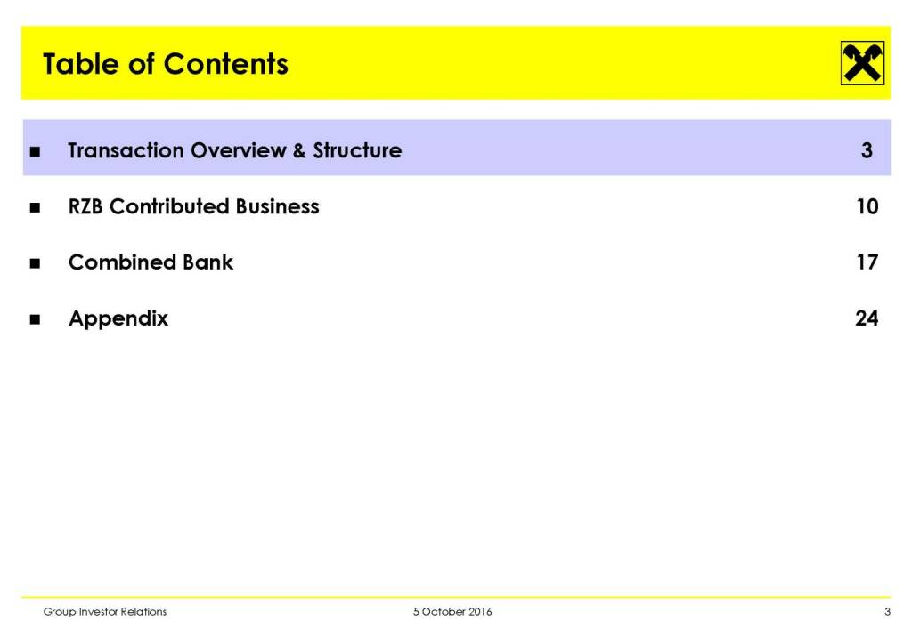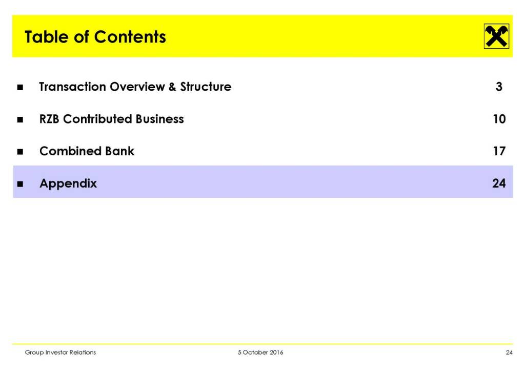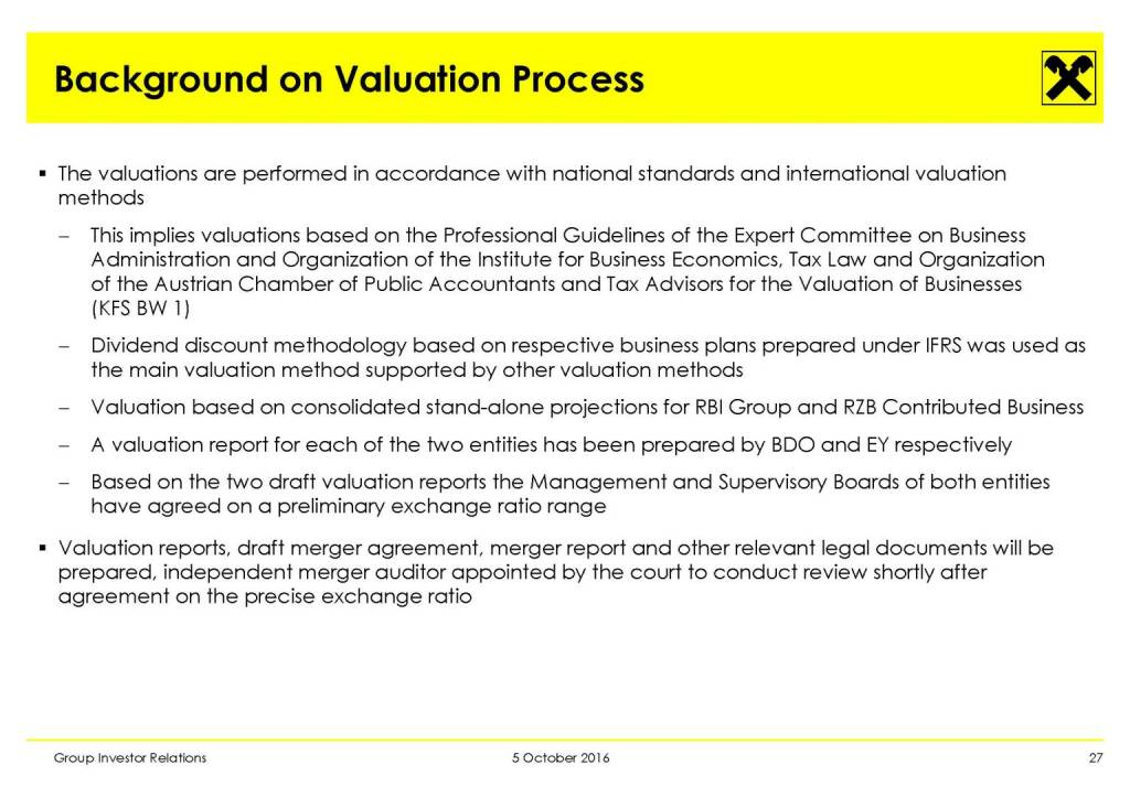 „ Evaluation Process Update: Merger of RZB and RBI “