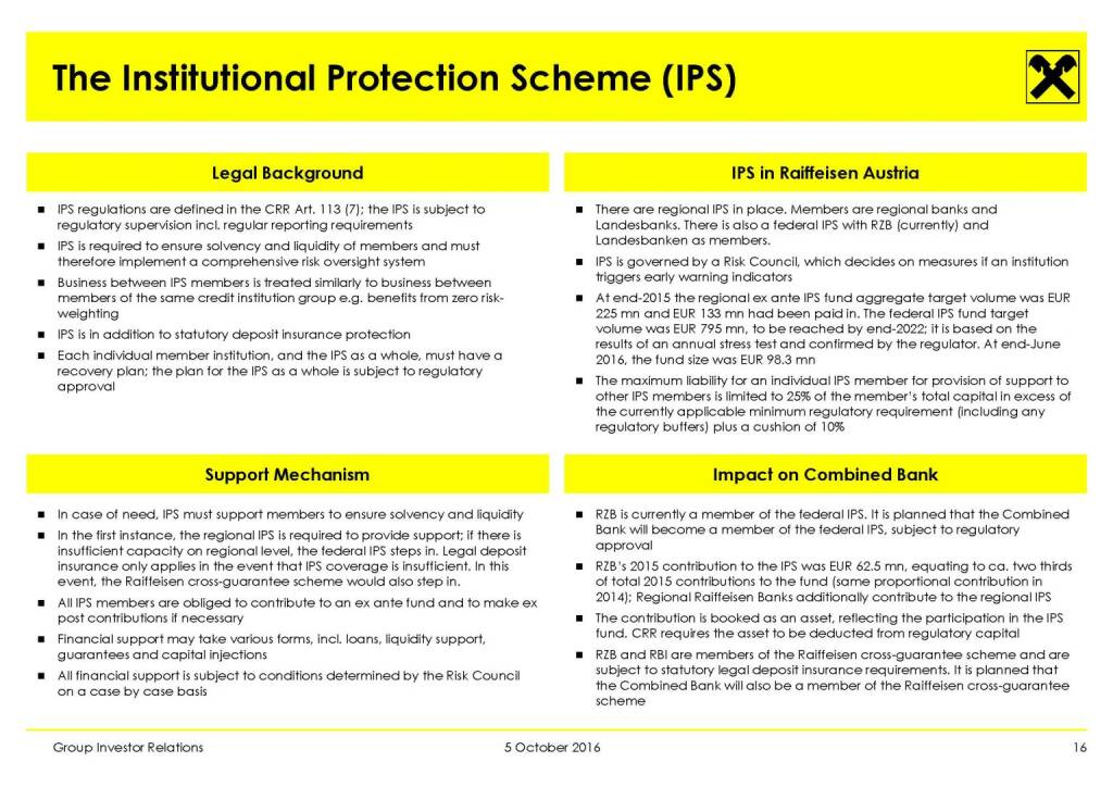 „ RBI - Key Financials of Combined Bank (H1/2016) “
