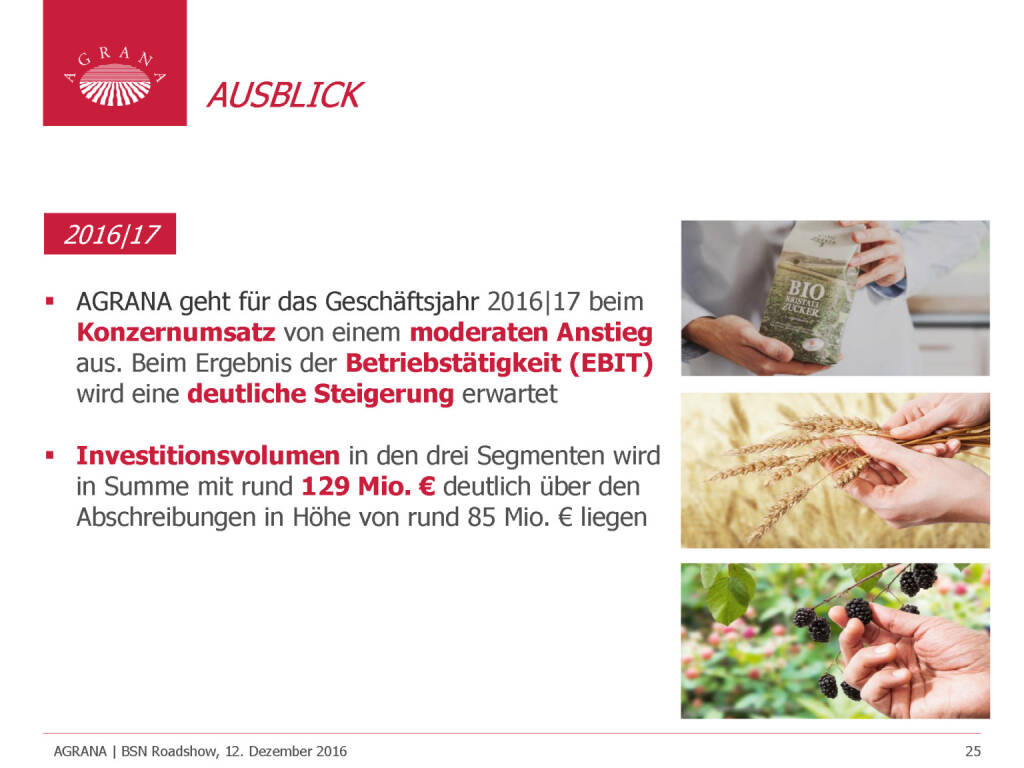 „ Agrana - Highlights im 1. Halbjahr 2016/17 “