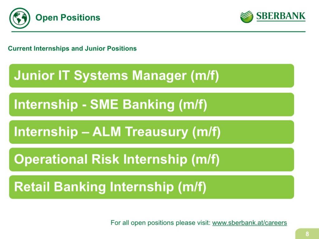 „ Sberbank Europe - Open Positions “